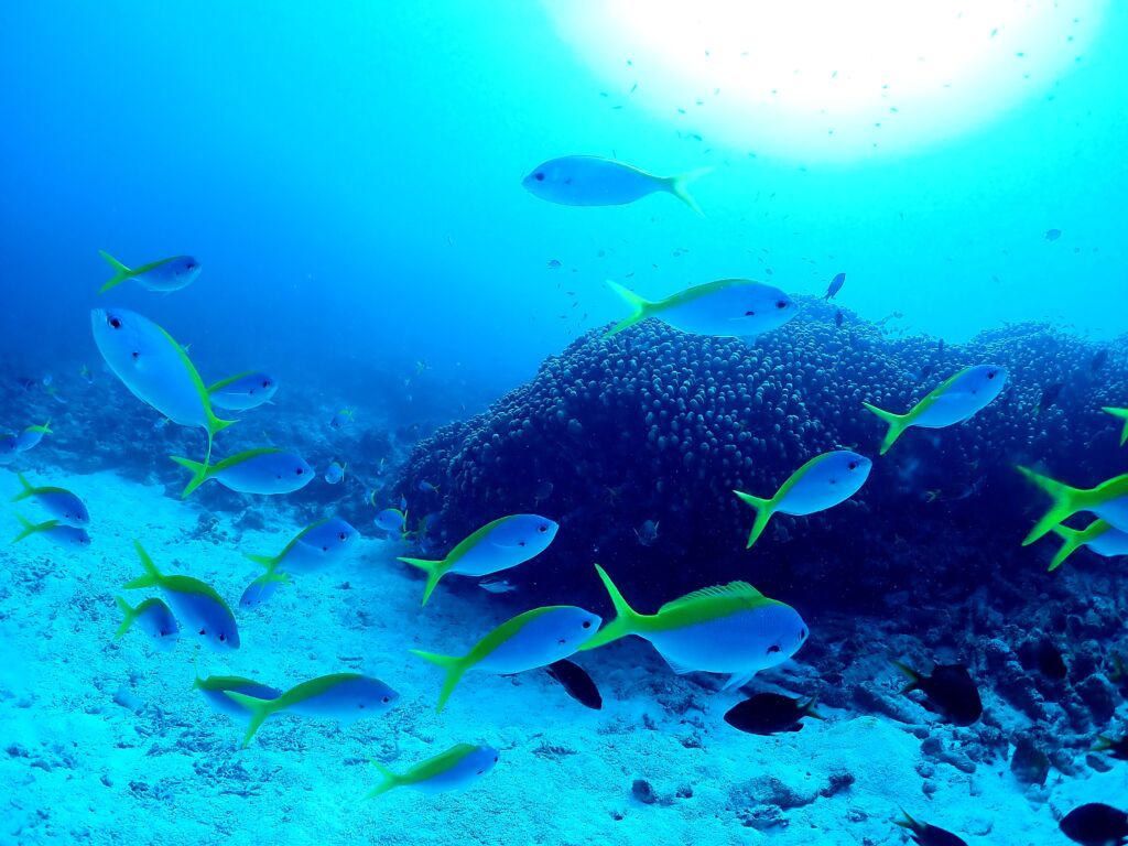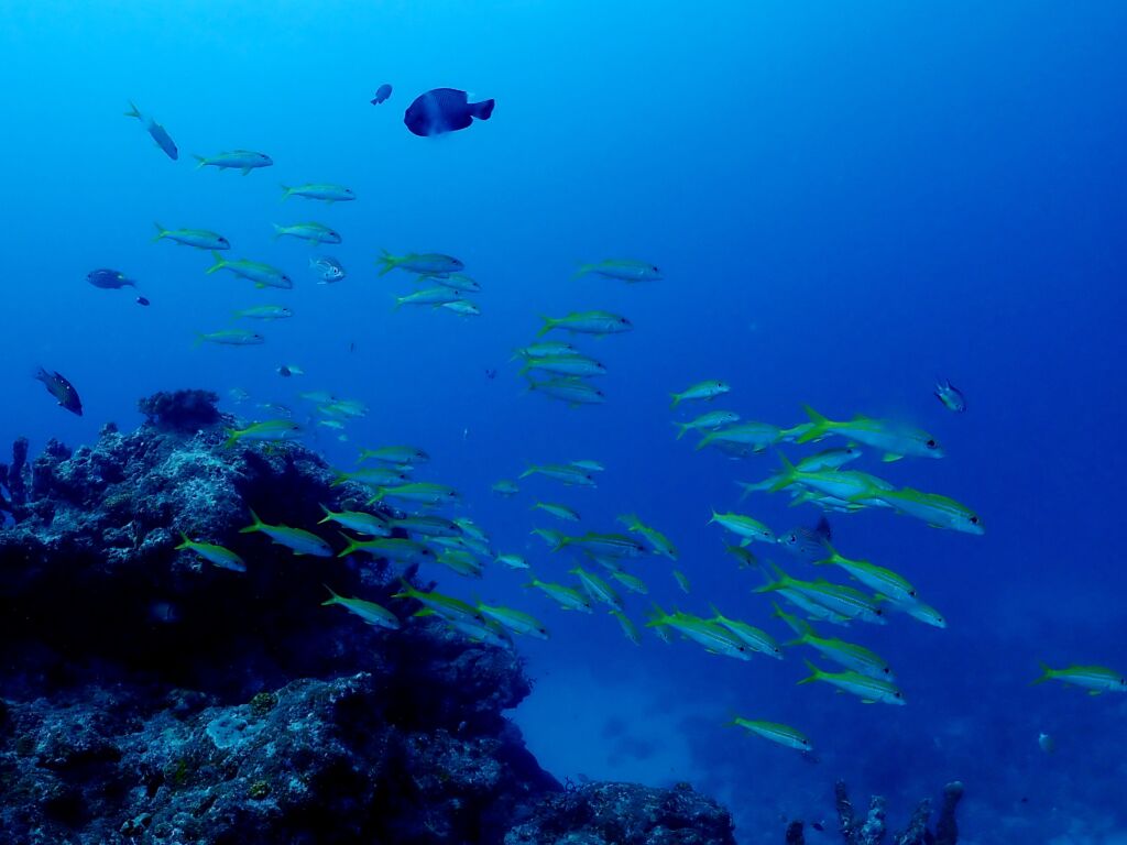 沖へと移動すると砂地にドデカイ根があり、グルクンやアカヒメジなどが華やかです😁