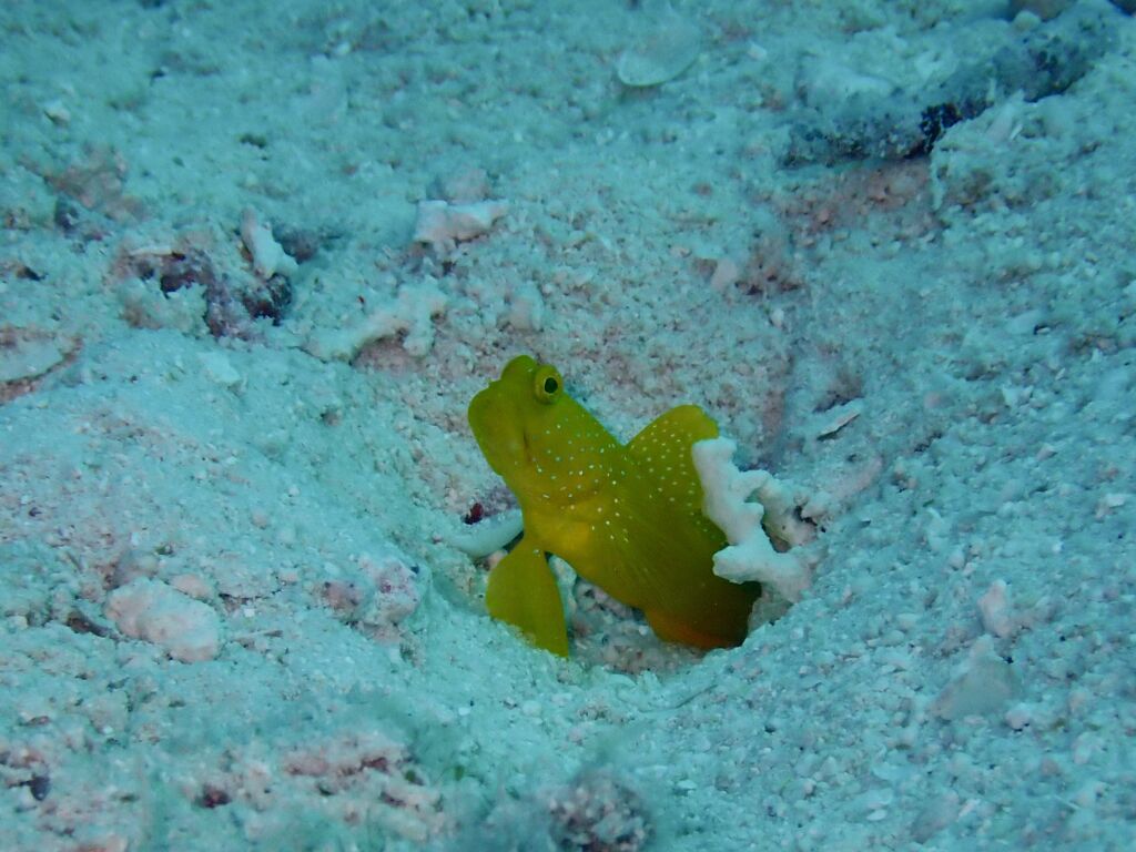 砂地にある小さなテーブルサンゴにデバスズメダイ☆