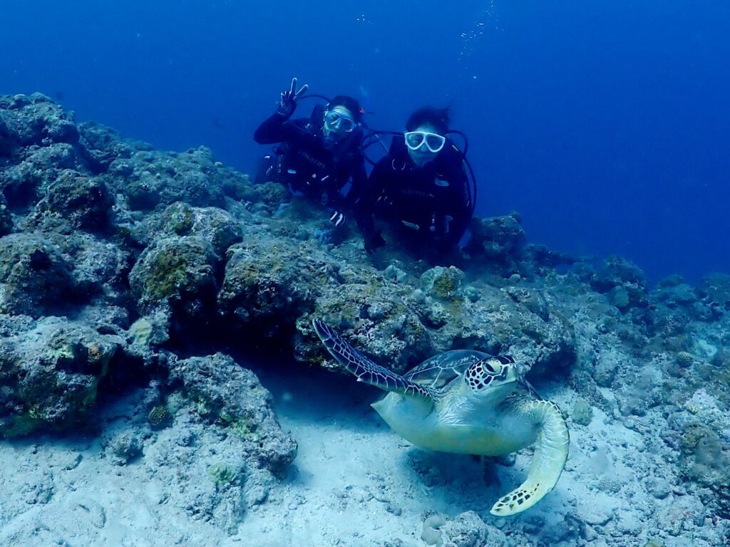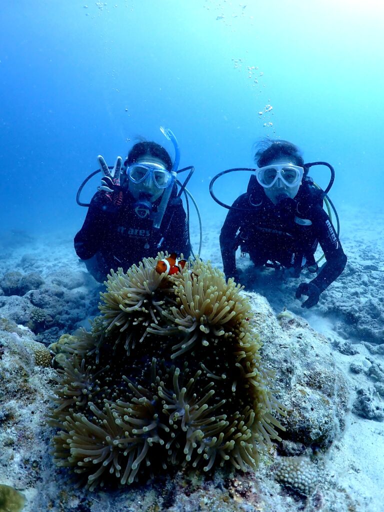 久しぶりのダイビングでドキドキだったみたいですが、泳ぎもとても上手でした😃