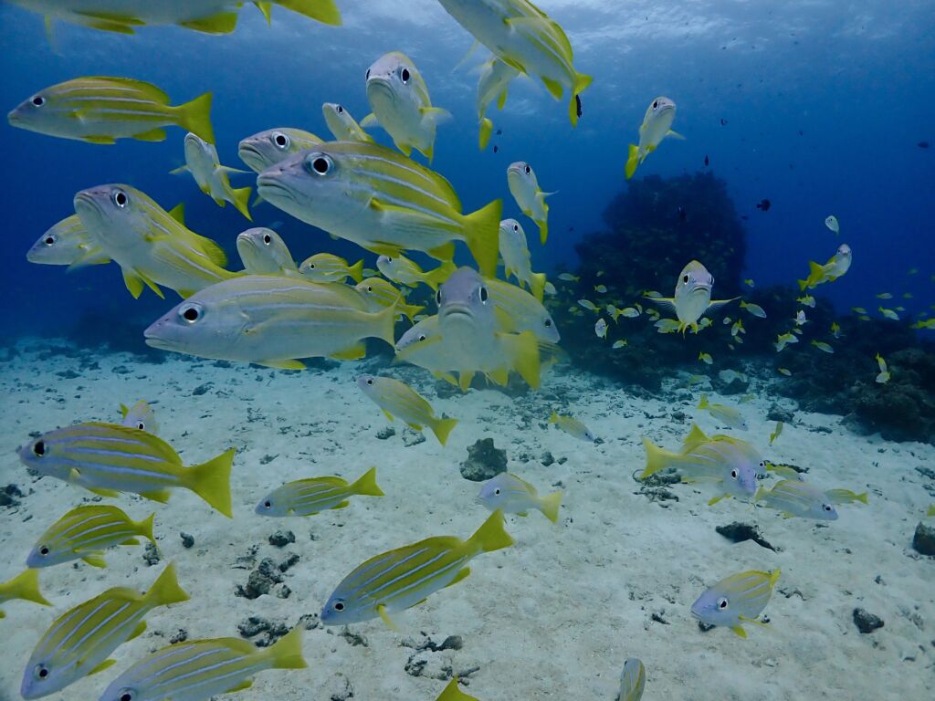 青い水中にヨスジフエダイの黄色が映えますね〜!