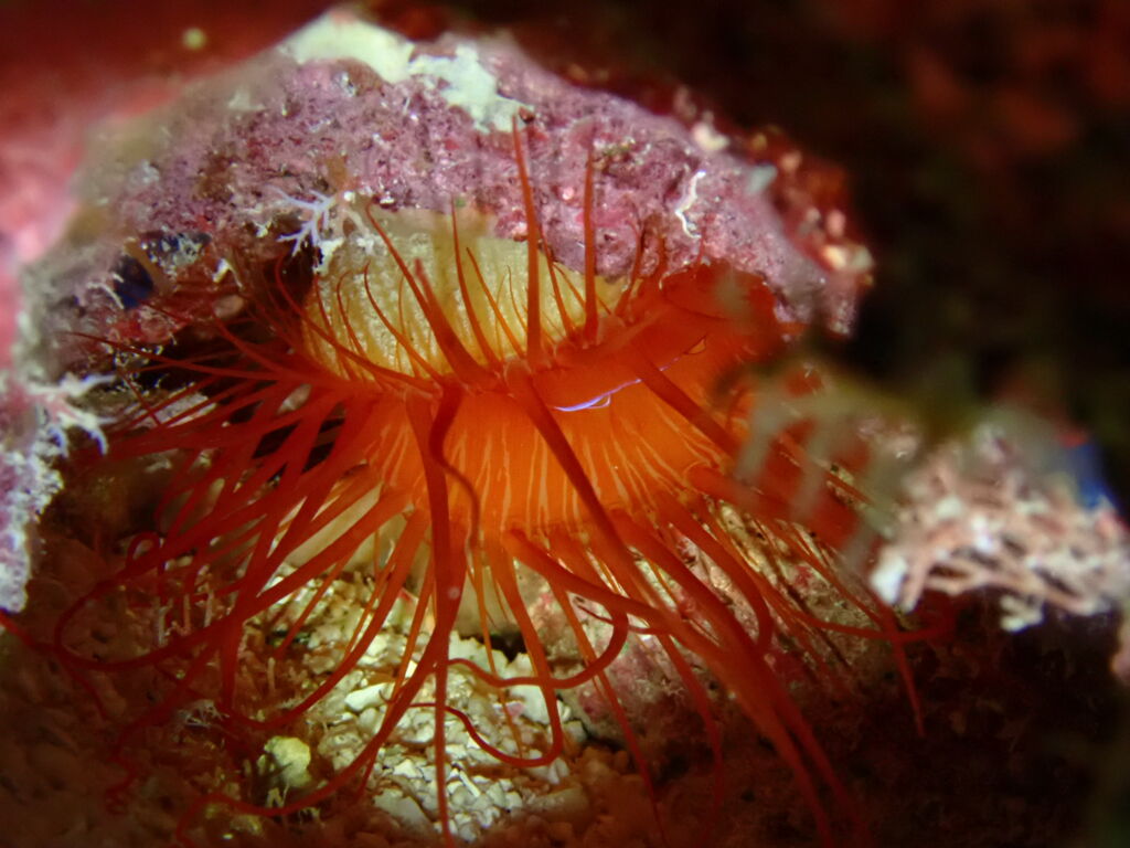壁穴にはキラキラと光るウコンハネガイがいたり、ハデハデなルージュミノウミウシにも出会えましたよ~😍